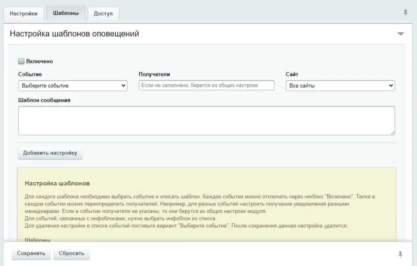 - Для каждого события можно настроить своих получателей. Например, один менеджер отвечает за новые заказы, а другой за оплату заказов.
