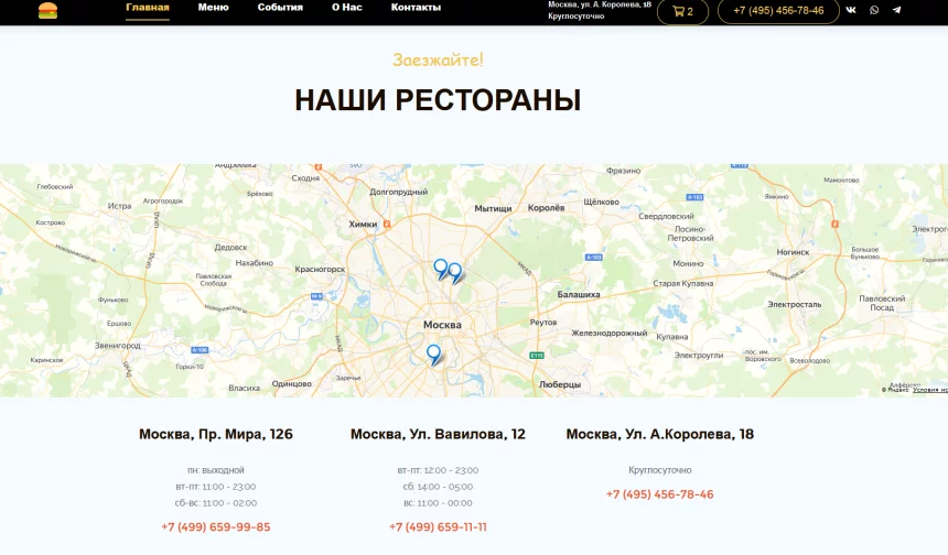 - Полноценный многостраничный сайт с меню и ценами на блюда