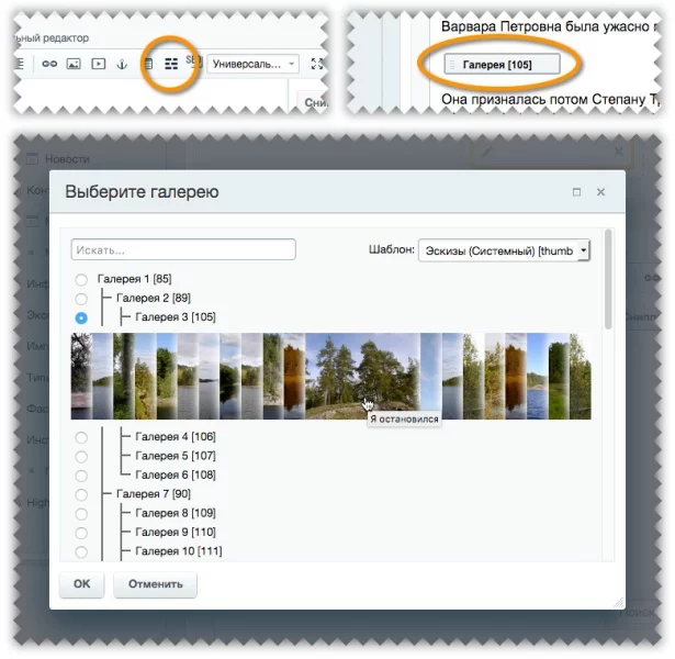 - Удобное размещение галерей - как непосредственно на странице, так и в внутри статей, новостей и любых текстов