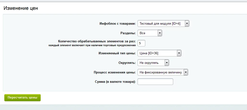 Массовое изменение цен (Старт) Битрикс