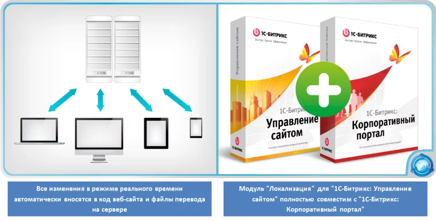 Модуль "Локализация" сделает ваш сайт под управлением CMS "1С-Битрикс: Управление сайтом" действительно мультиязычным и предоставит все инструменты, чтобы полностью его перевести. За считанные минуты вы сможете настроить мультиязычность без многосайтовости или с ней, выбрать используемые сайтом языки и приступить непосредственно к переводу. В модуль уже включены более 60-ти самых распространенных вариантов языков и локализаций, и вы можете свободно расширять этот список.