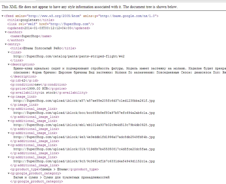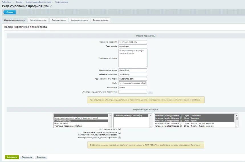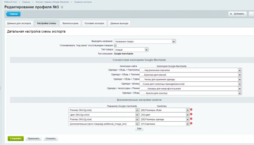 Экспорт в Google Merchants