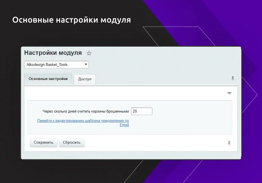 Модуль «Работа с брошенными корзинами» позволяет работать с корзинами пользователей, из которых не были оформлены заказы. Это очень удобно, так как одним действием можно разослать сразу все уведомления о забытых корзинах.