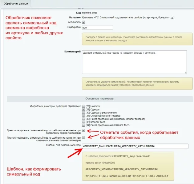 element_code - Красивые ЧПУ. Символьный код элемента из свойств (из артикула, бренда и т. д.)