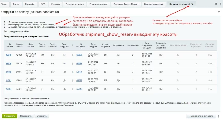 shipment_show_reserv - Отгрузки. Показывать отгрузки и резервы на странице редактирования товара