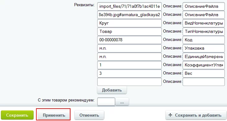Модуль помогает, если 1С выгружает некоторые реквизиты товара «не туда».