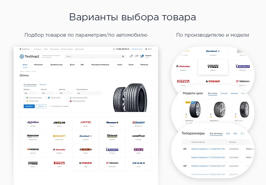 Готовое решение разработано с учетом потребностей реальных проектов. Мы запустили более 100 интернет-магазинов по продаже шин, дисков, расходных материалов и автомобильных аксессуаров на 1С-Битрикс. Встречайте новое решение от экспертов отрасли — Аспро: Шины и диски 2.0