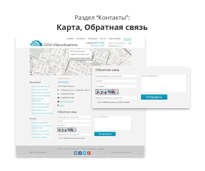 - Формы «Заказать звонок с сайта» и «Обратная связь»;