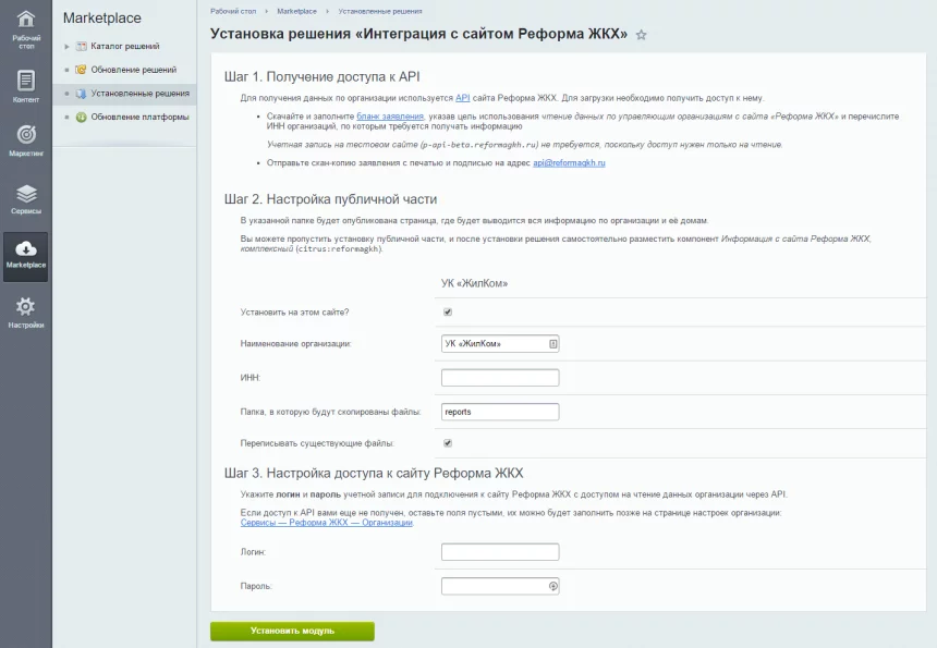 - Быстрое внедрение модуля на сайт компании ЖКХ за 1-2 дня.