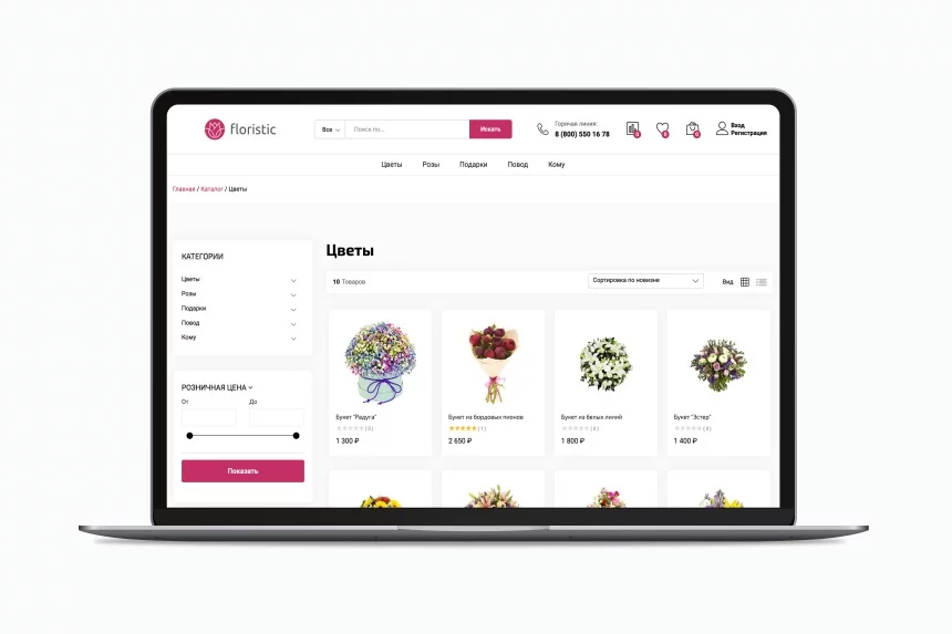 Цветочный магазин Floristic. Каталог цветов, букетов, подарков.