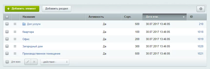 В обновлении версии 1.0.1 от 18.12.2017, появилась возможность добавлять различные виды окон в специальный блок. Для этого переходим Контент → Калькулятор уборки → Цены на уборку→ Виды окон. Подробнее в Инструкции.