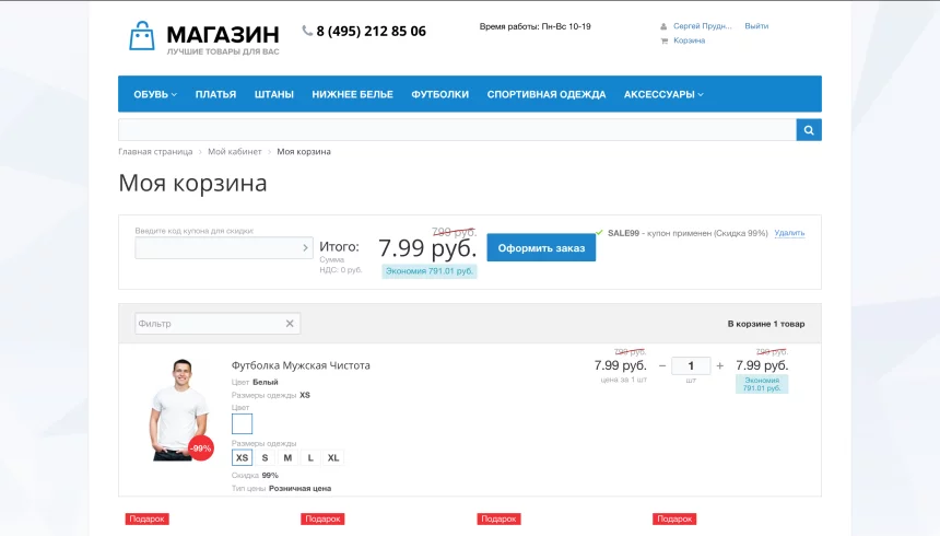 Проверь как это работает: просто кликни на "Онлайн-демо" и при заказе будет применена скидка 99% с помощью купона SALE99.