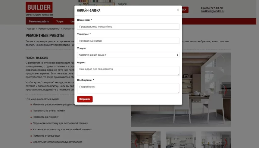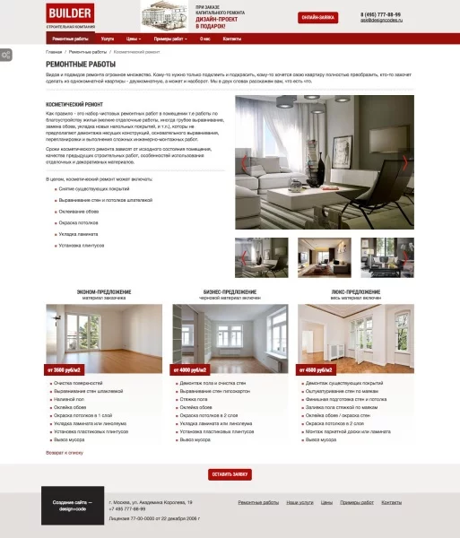Design+Code:Builder. Адаптивный сайт ремонтно-строительной компании