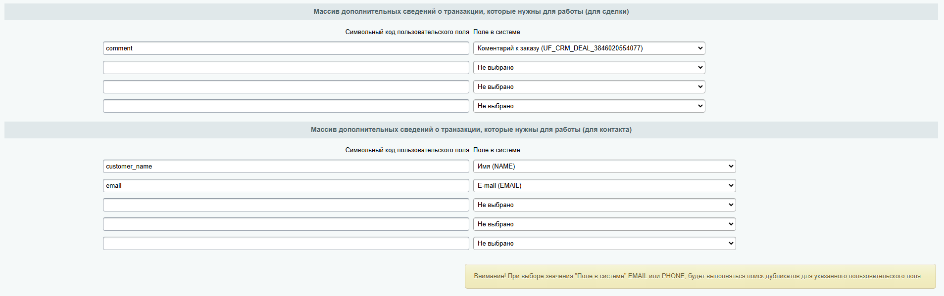 - гибкая настройка приема данных и записи в соответствующие поля сделки. Вы сами решаете, какие данные вам необходимы;