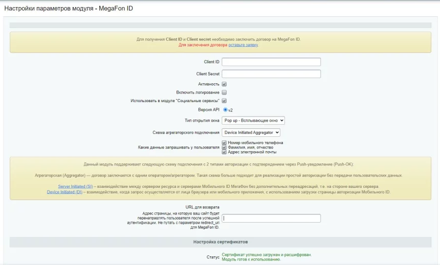 Для получения Client ID и Client secret необходимо заключить договор на Мобильный ID.