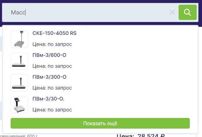 Мгновенный умный поиск товаров с подсказками (название, фото, цена и т.п) и выбором полей для поиска