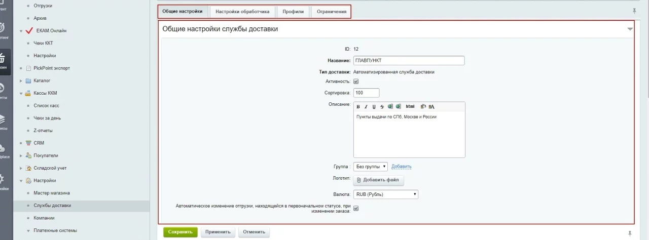 Модуль выбора пункта выдачи ГЛАВПУНКТ Битрикс