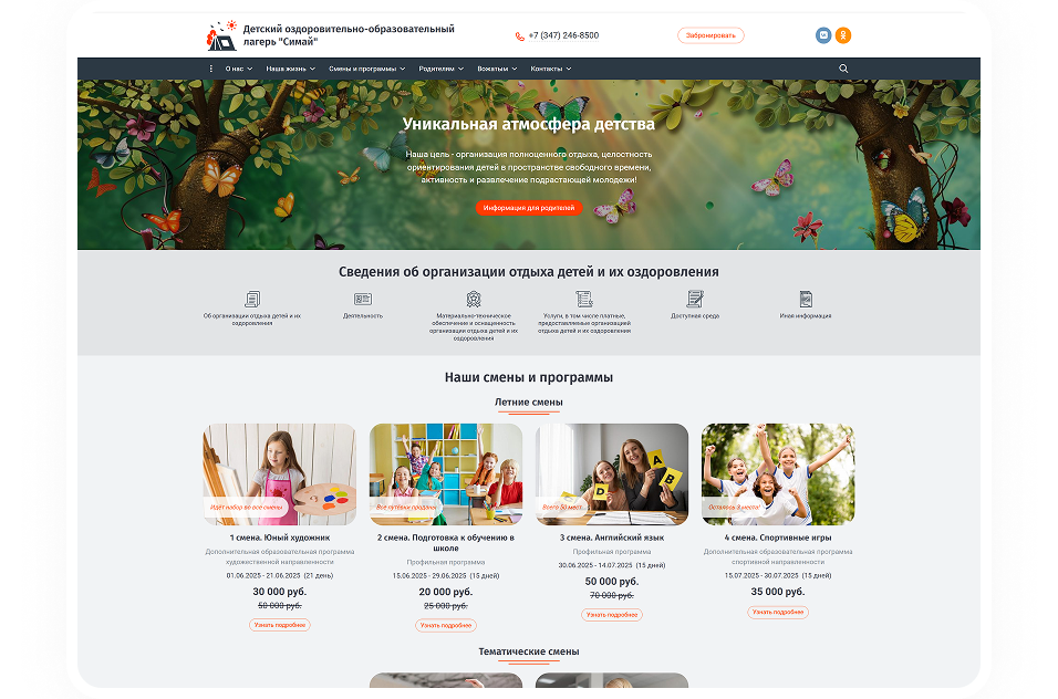SIMAI-SF4: Сайт детского оздоровительного лагеря – адаптивный с версией для слабовидящих