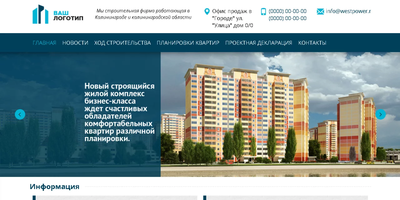 Сайт строительной компании - застройщика (адаптивный)