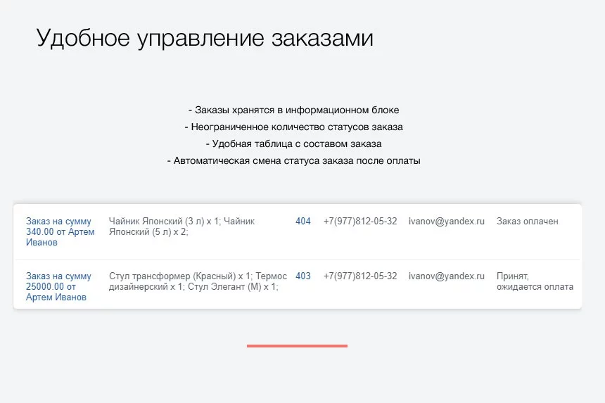 Быстрая проверка статуса по номеру заказа и email клиента. Ваши клиенты смогут быстро проверить статус и состав своего заказа. Размещайте в заказе общий статус и индивидуальные сообщения для клиентов. Автоматическое изменение статуса заказа при успешной оплате.
