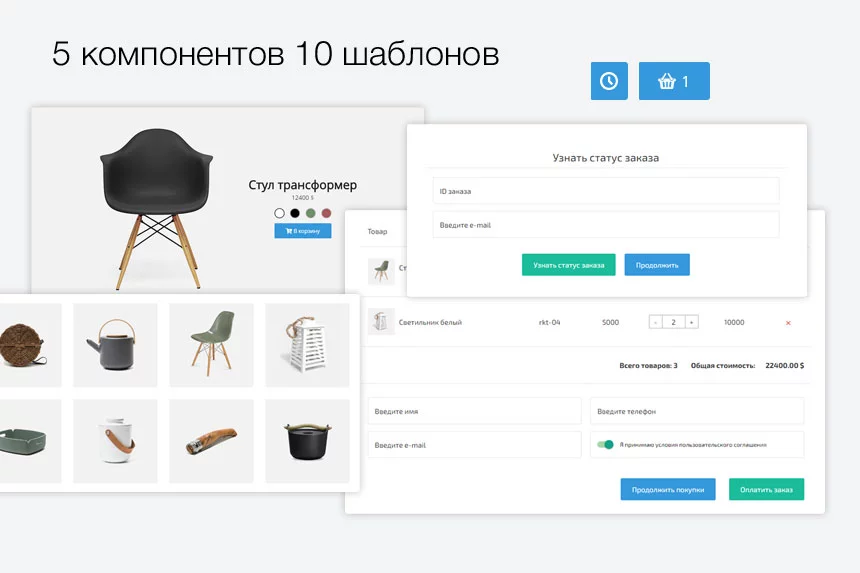 - Статус заказа (2 шаблона - во всплывающем окне или в любом блоке)