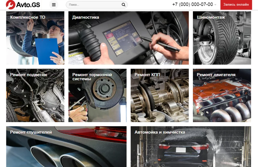 Avto.GS – Автосервис, СТО, мойка, шиномонтаж. Продающий сайт компании с каталогом