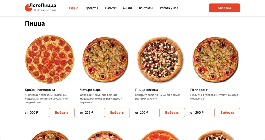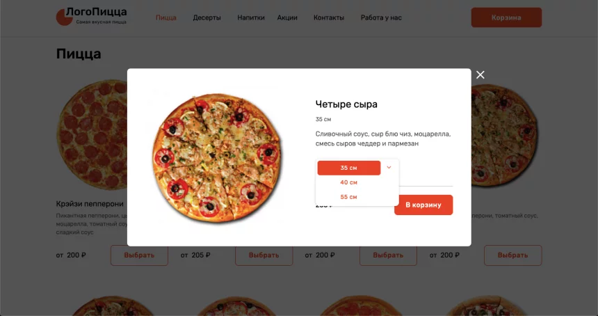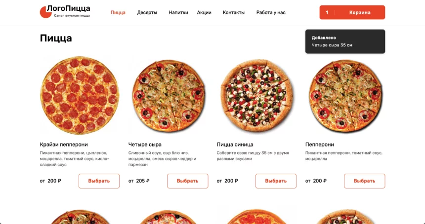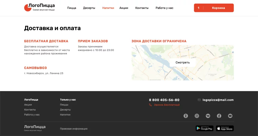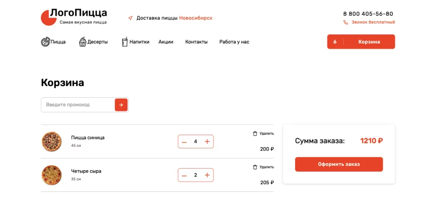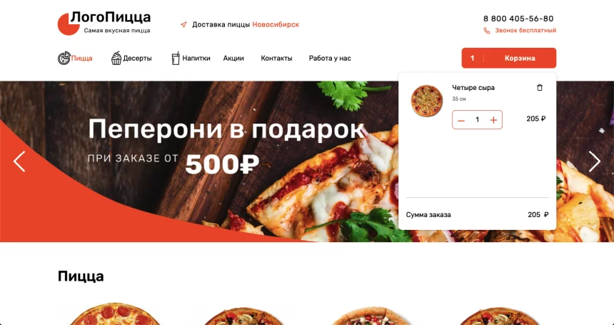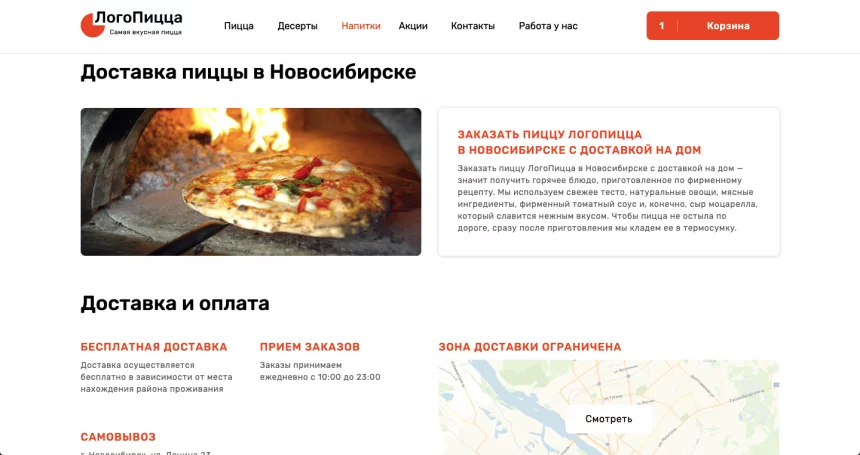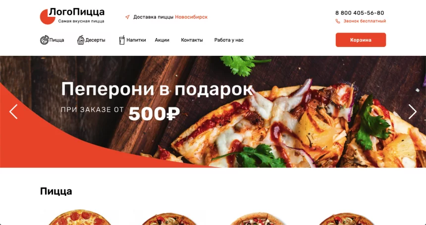Сайт ресторана, доставки еды: пиццы, суши. Корзина на любой редакции