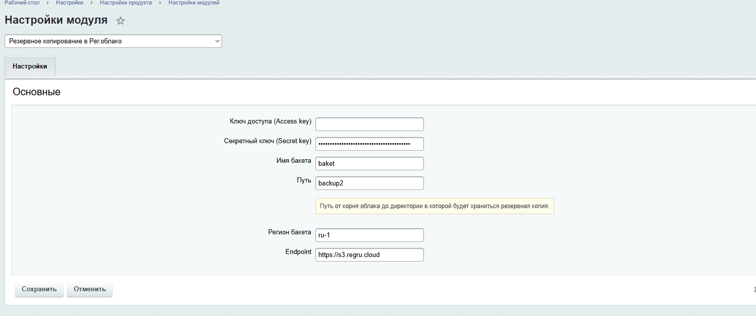 Резервное копирование в Рег. облако