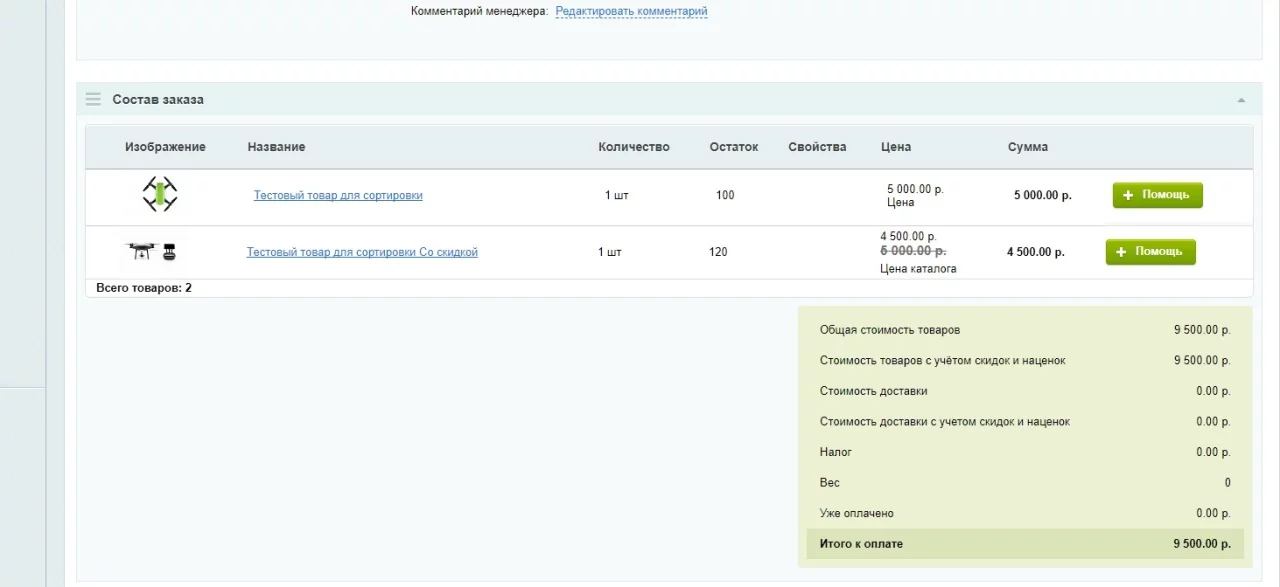 • Работа с заказами