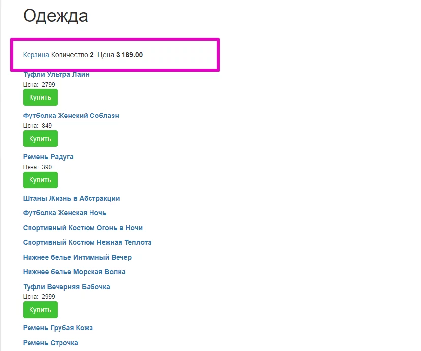 • Корзина, покупка