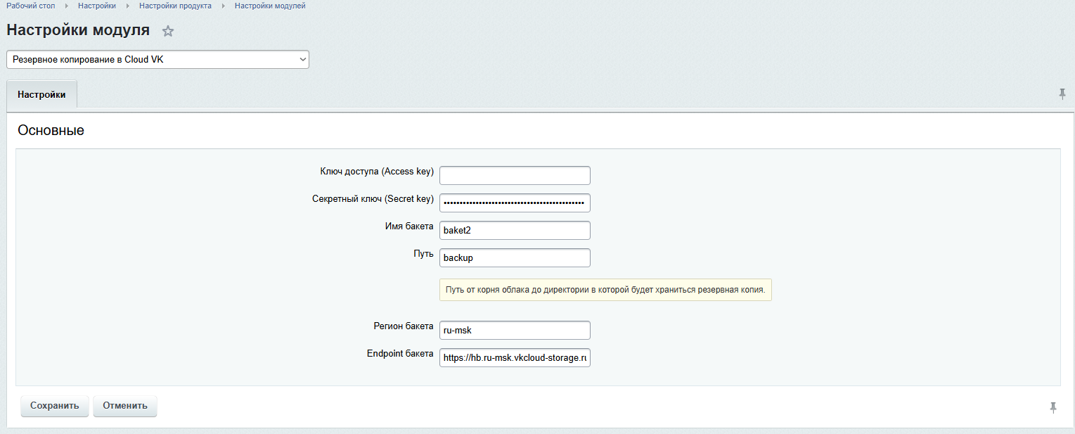 Резервное копирование в Облако VK