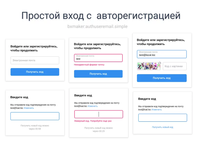 BXmaker. Авторизация по коду из Email письма