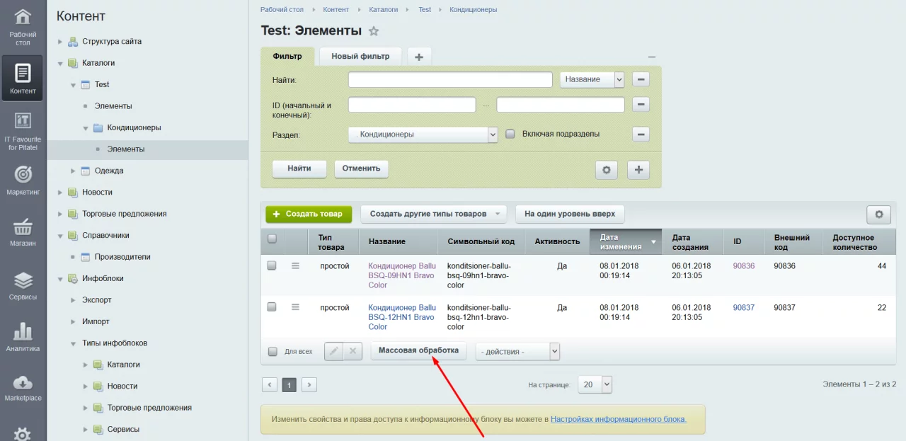 Массовая обработка элементов инфоблока (товаров) Битрикс