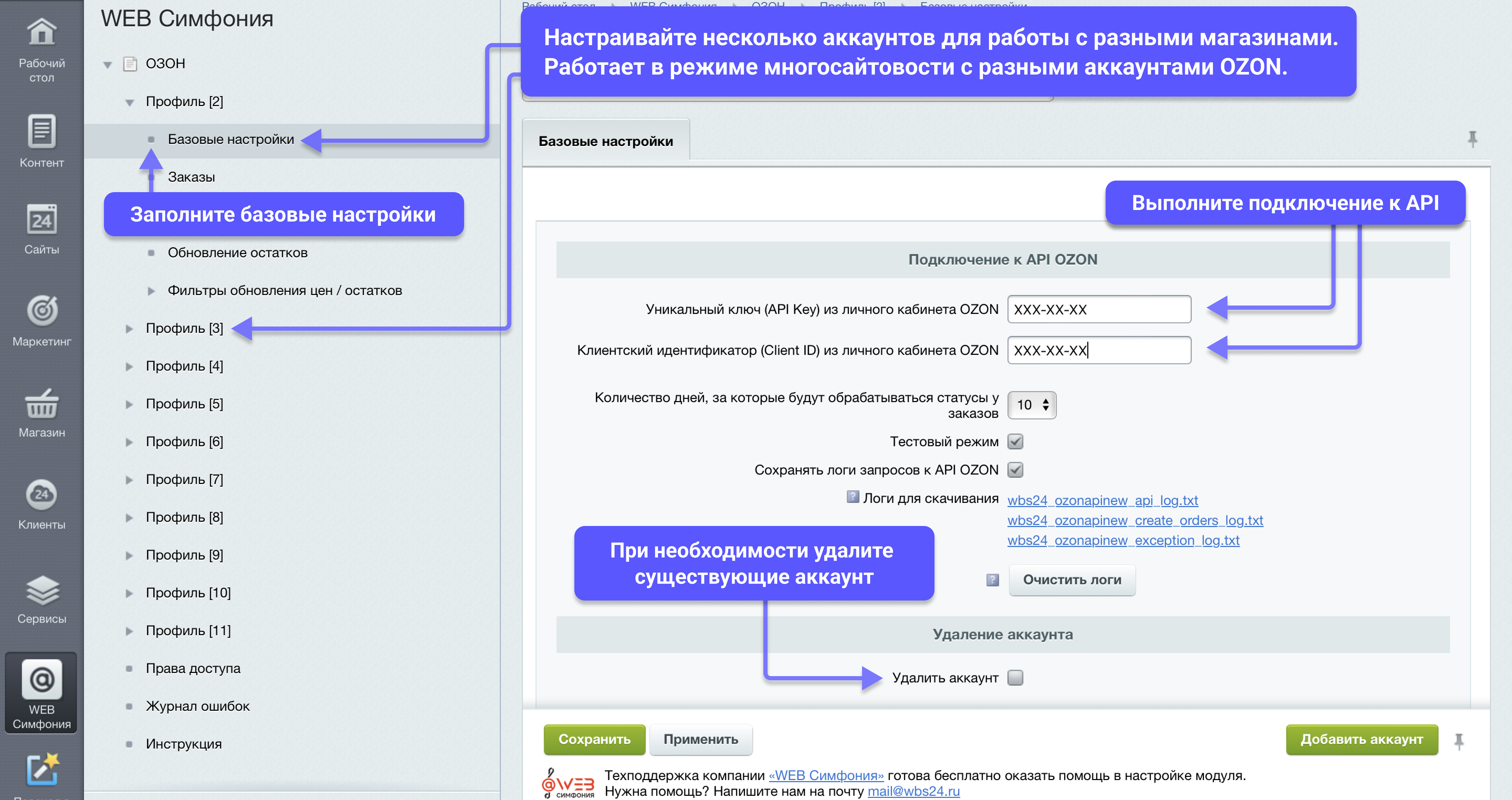 WBS24: Интеграция заказов, остатков и цен с OZON (ОЗОН) по API
