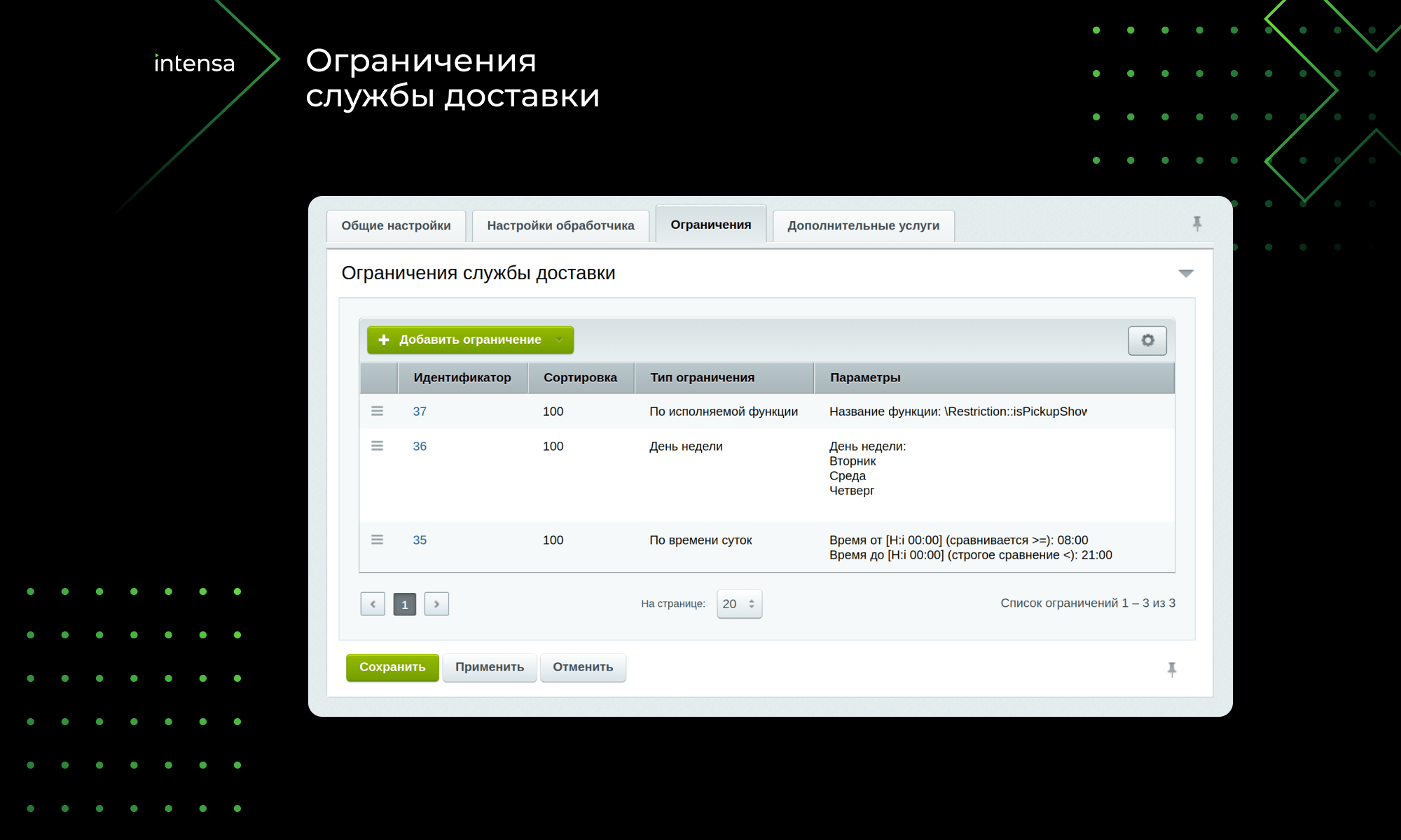 Intensa: Расширение набора ограничений для служб доставок и оплат для интернет-магазина Битрикс