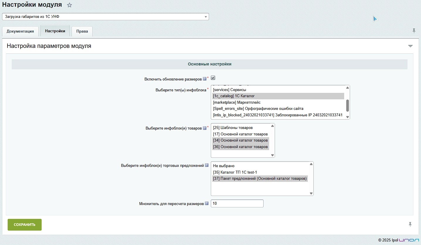 Загрузка габаритов из 1С УНФ