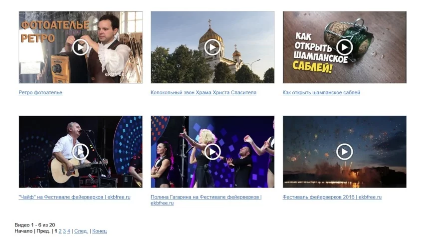 В настройках компонента можно казать количество роликов на одной странице. Есть два шаблона. В одном можно настроить количество колонок для вывода списка видео. Второй шаблон - адаптивный.