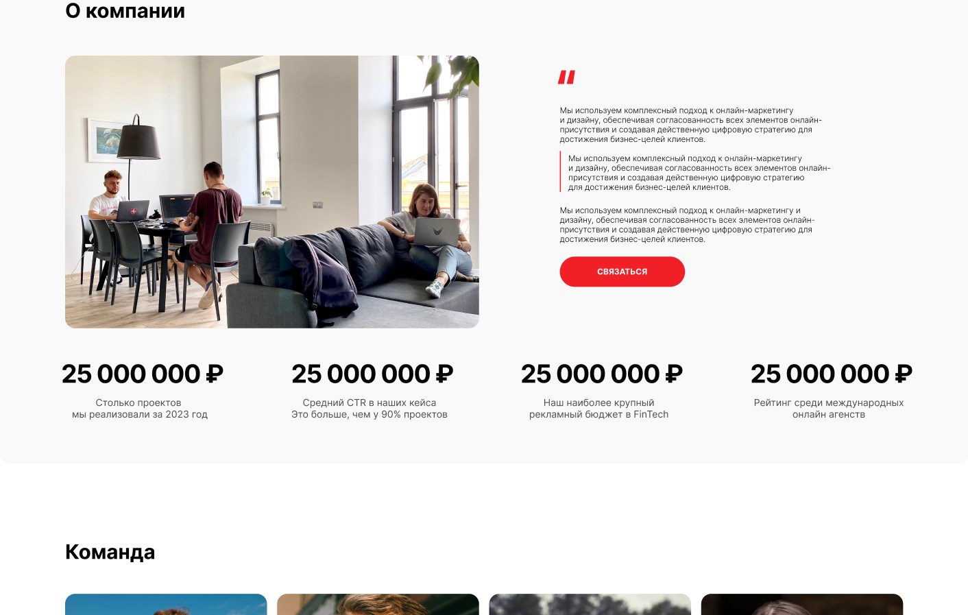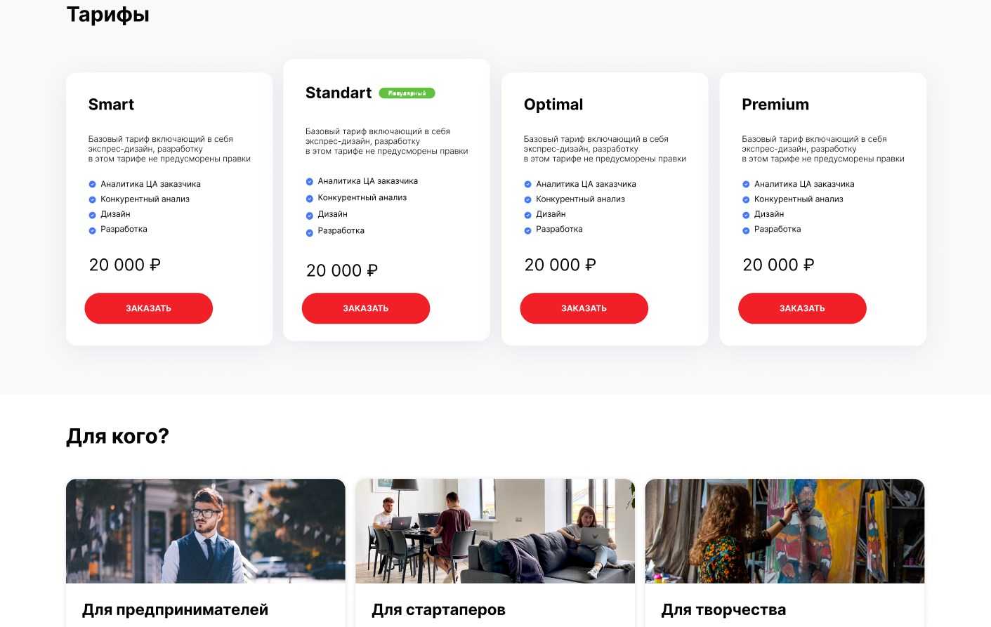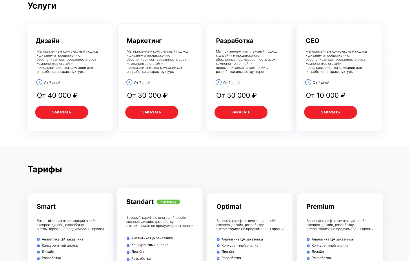 Большое количество блоков для маркетинговых целей.