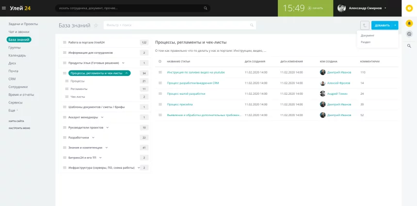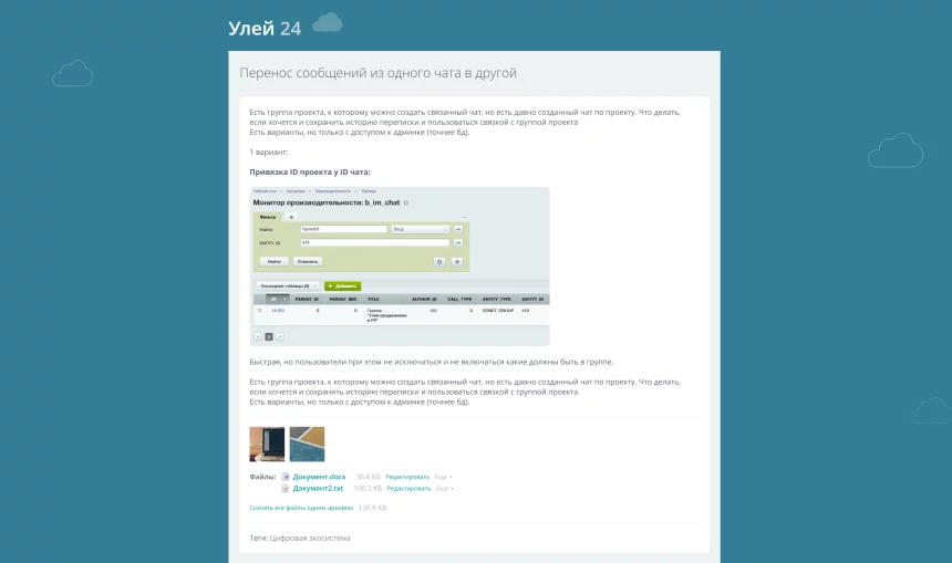 «Улей: База знаний» – хранилище документации с функционалом каталогизации, комментирования, экспорта, настройки уровней доступа к информации, а также уведомлений об изменениях в статьях.