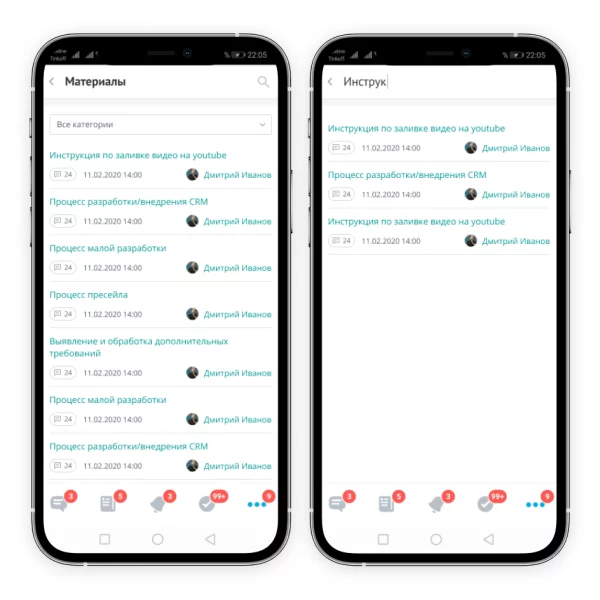 - Автоматические уведомления сотрудников о появлении новых материалов