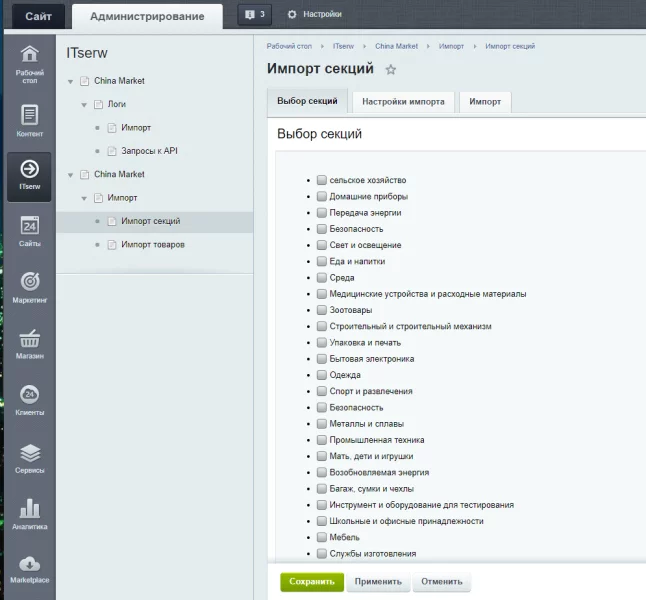 Фреймворк интеграции с китайскими маркетплейсами