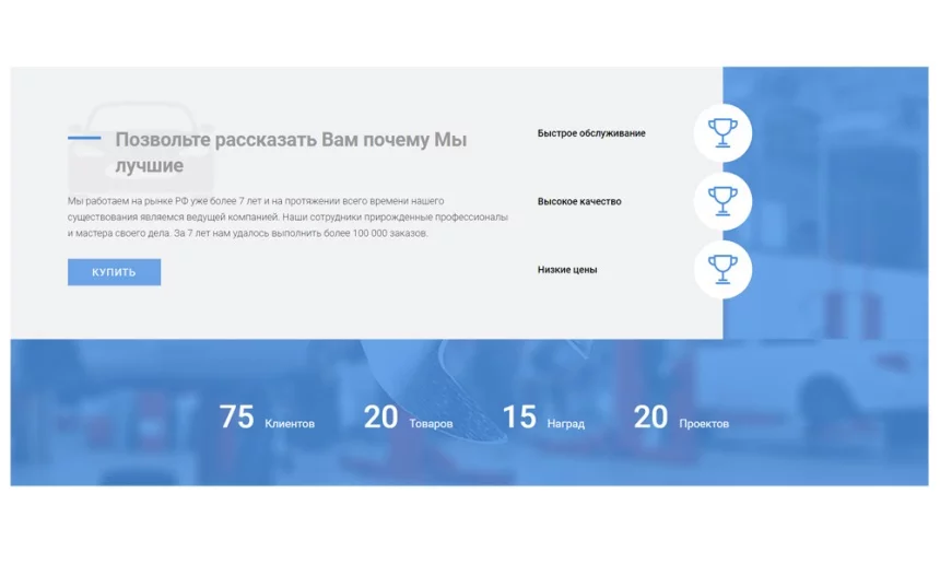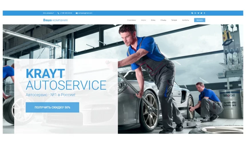 Шаблон «Krayt.AutoService» — готовый инструмент продаж с авторским дизайном для автосервиса.