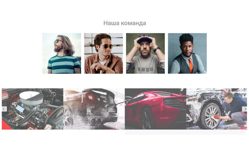 Блок «Команда» с привязкой к социальным сетям;