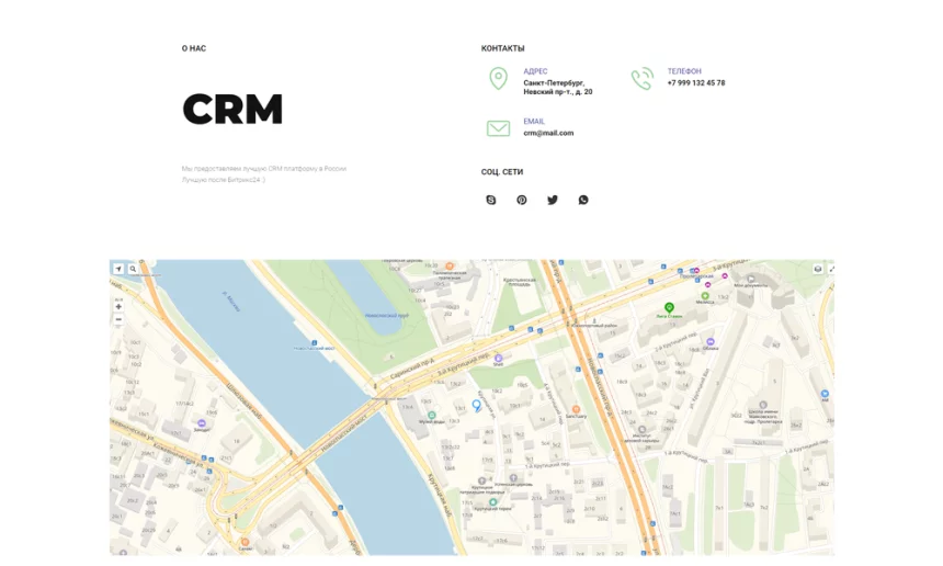 Блок «Контакты и интерактивная карта»