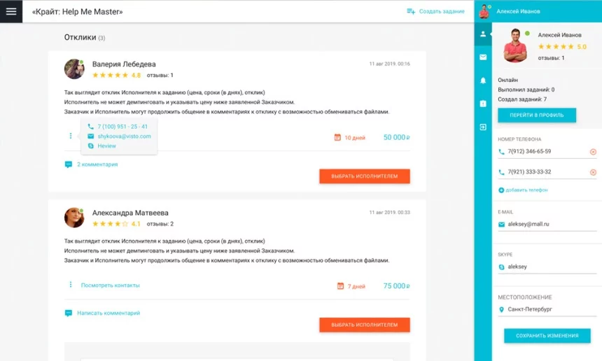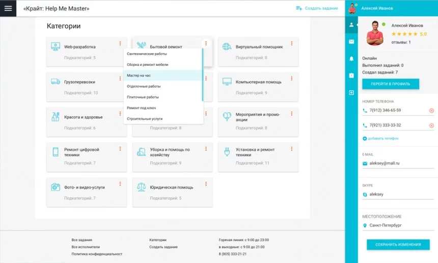 Отраслевой cервис поиска исполнителей и специалистов, биржа фриланса, портал услуг «HelpMeMaster»