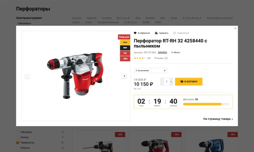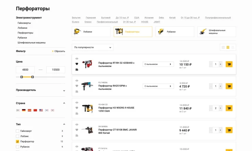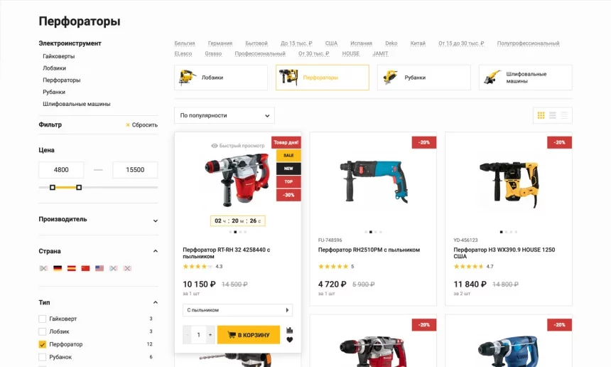 или просто сгруппируйте популярные позиции по разделам (например, «Лучшие перфораторы»).