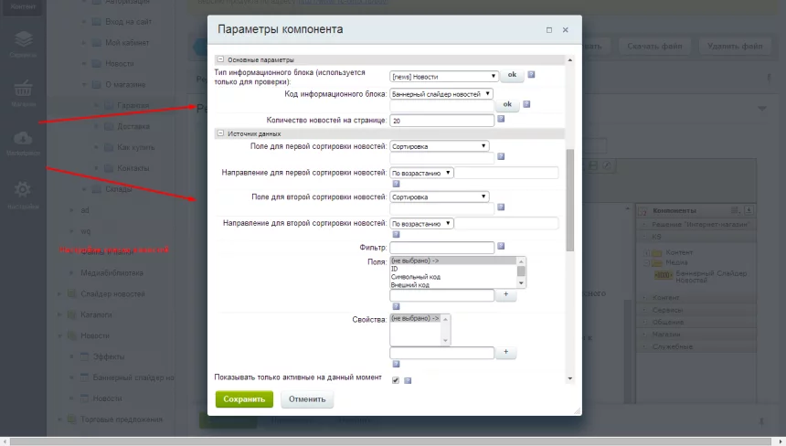 3. Все настройки, которые есть в стандартном компоненте 1с Bitrix Список Новостей (news.list):