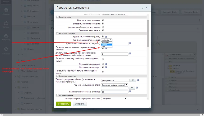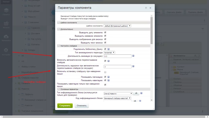 4. Настройки слайдера:
