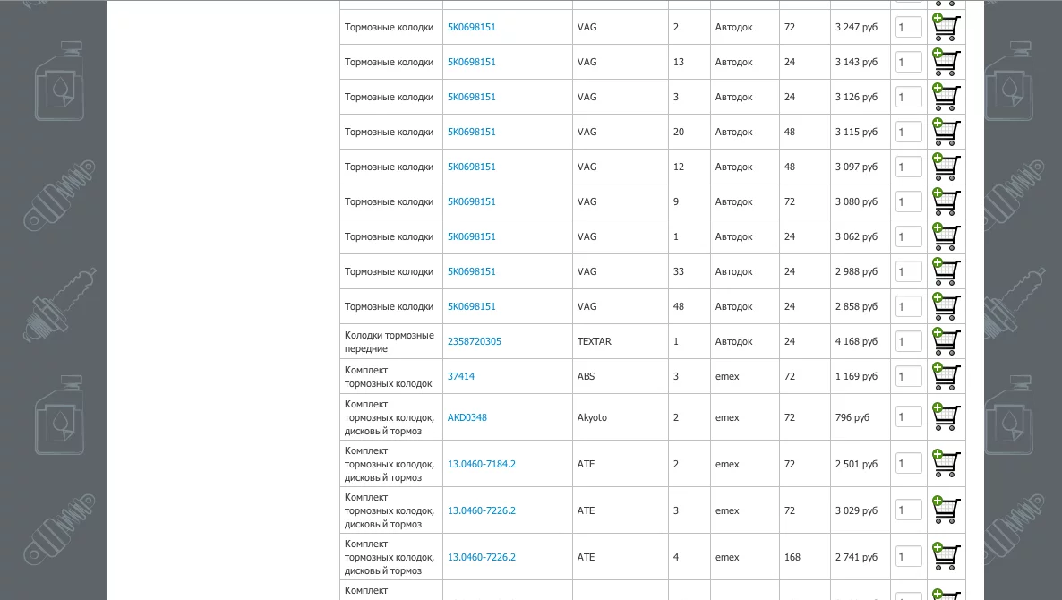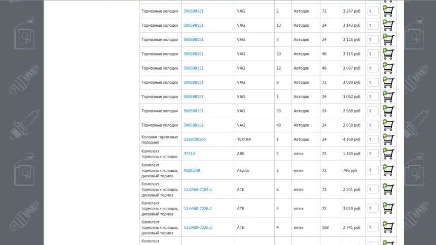 Подключение поиска автозапчастей с сторонних сайтов: