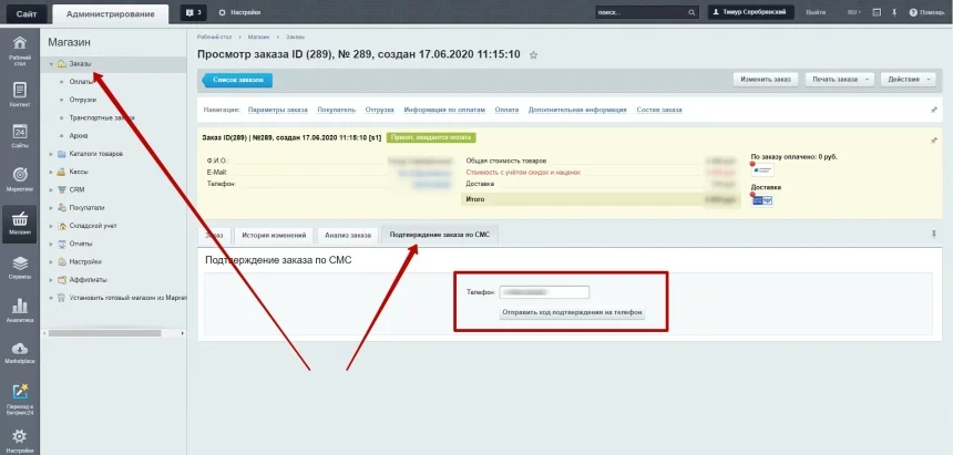 Подтверждение заказа по СМС в пункте выдачи Битрикс